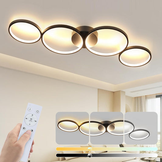 ZMH Deckenlampe LED Deckenleuchte Wohnzimmer - Schwarz Dimmbar 82CM Wohnzimmerlampe mit Fernbedienung 74W mit 3 Ringen Design aus Acryl für Schlafzimmer Büro Küche Arbeitszimmer Hotel