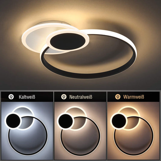 ZMH LED Deckenlampe Dimmbar Deckenleuchte Wohnzimmer Schwarz Wohnzimmerlampe Modern Schlafzimmerlampe 46W 2-Ringen für Schlafzimmer Arbeitszimmer Büro Küchen Hotel Restaurant Esszimmer- 59*40*12CM