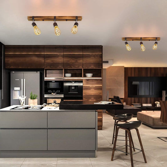 ZMH Vintage Deckenleuchte Holz Deckenspots Retro Deckenstrahler 55CM mit verstellbaren Strahlern, 3xE27 Warmweiß, Schwenkbar Deckenlampe für Flur Küche Esszimmer Wohnzimmer Bar, 3x E27 4W 2200K