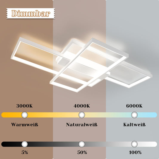 ZMH LED Deckenleuchte Dimmbar Deckenlampe Modern - Weiß Schlafzimmerlampe 68W Design Wohnzimmerlampe mit Fernbedienung Deckenbeleuchtung für Wohnzimmer Schlafzimmer Esszimmer Büro