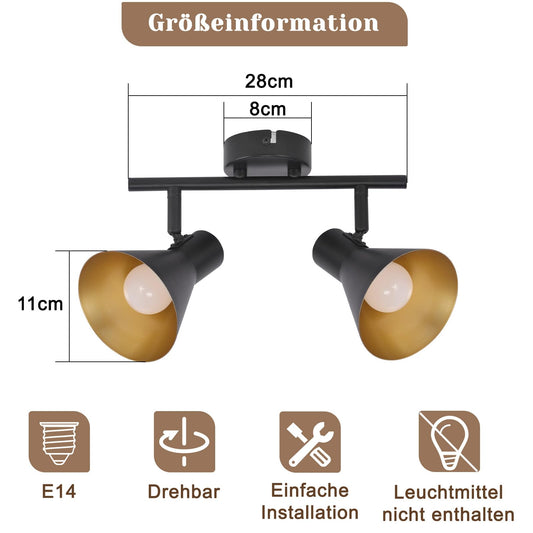 ZMH Deckenlampe Küche Deckenstrahler Schwarz - 2 Flammig Küchenlampe E14 Vintage Deckenleuchte Flur Schwenkbar 330° Industrial Flurlampe Retro Strahler Metall für Büro Eingangsbereich