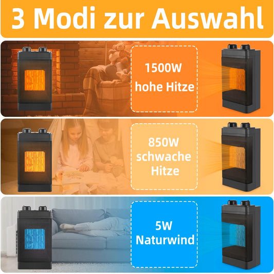 Heizlüfter, energiesparend, leise Heizung, elektrische Heizung, 3 Modi, PTC-Keramikheizung, Innenbereich, 1500 W, Badthermostat, 70° Oszillation, Raumheizung, elektrische Heizung, Überhitzungsschutz