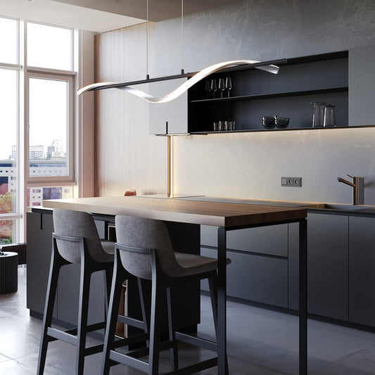 LED Pendelleuchte Esstisch Hängelampe Dimmbar - 32W Schwarz Esstischlampe Hängend 107CM Höhenverstellbar mit Fernbedienung Hängeleuchte Modern Linear Design für Esszimmer Büro Wohnzimmer