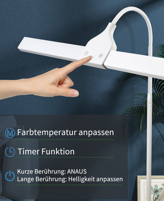 LED Stehlampe Stehleuchte Dimmbar - Modern Touch Control Leselampe Wohnzimmer 10W mit Timer und Memory Funktion Touch Flexibler Schwanenhals Modern Standleuchte für Schlafzimmer
