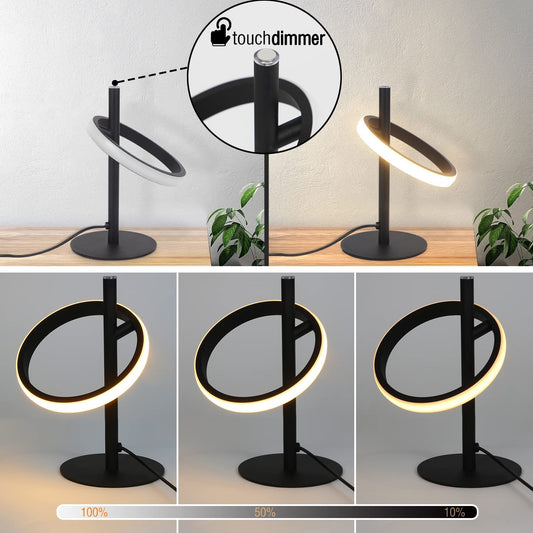 2Er Tischlampe LED Tischleuchte Touch Dimmbar - Nachttischlampe Schwarz Nachttischleuchte Drehbaren Ringe 6W 3000K Warmwei? f¨¹r Schlafzimmer Bett Wohnzimmer Kinderzimmer Bar Restaurant