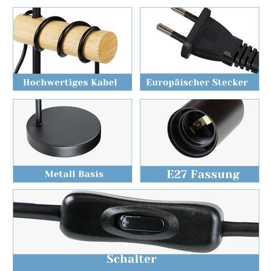 ZMH Tischlampe Holz Nachttischlampe Vintage Tischleuchte Schwarz Retro E27 in Industrial Rustikal Design Nachttischleuchte Kabel mit Schalter für Wohnzimmer Schlafzimmer Dekorative Beleuchtung