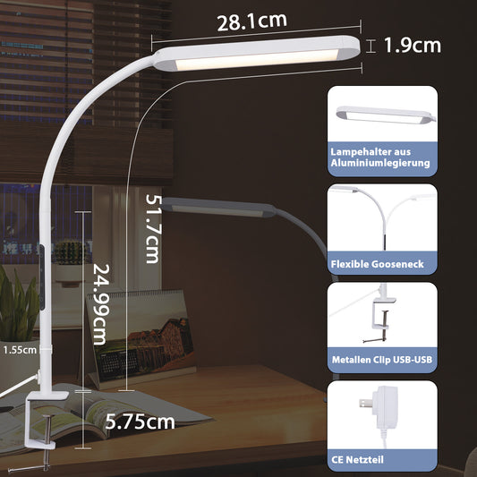 ZMH Schreibtischlampe LED Klemmbar - Weiß Tageslichtlampe Schreibtisch Lampe mit 3 Farbtemperatur und 5 Helligkeitsstufen Tischleuchte USB Bürolampe 5W Arbeitsplatzleuchte Klemmlampe für Büro