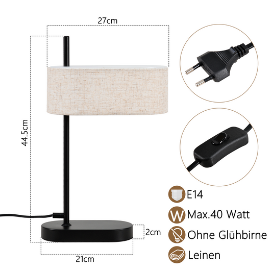 Nachttischlampe 2er Set Tischlampe mit Kabel - Tischleuchte Schwarz Klein Nachtlampe Schlafzimmer Stoff Bettlampe Modern Design Schreibtischlampe für Wohnzimmer Büro Bett Tisch Fenster Hotel