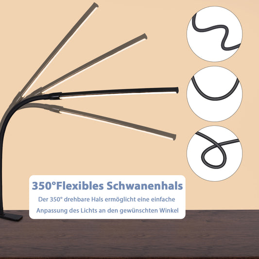 ZMH Schreibtischlampe LED Klemmbar - Dimmbar Schreibtischleuchte Schwarz 5 Farben und 5 Helligkeitsstufen 11W Tageslichtlampe Augenschutz Schwanenhals Tischlampe für Büro Arbeitszimmer Schneider