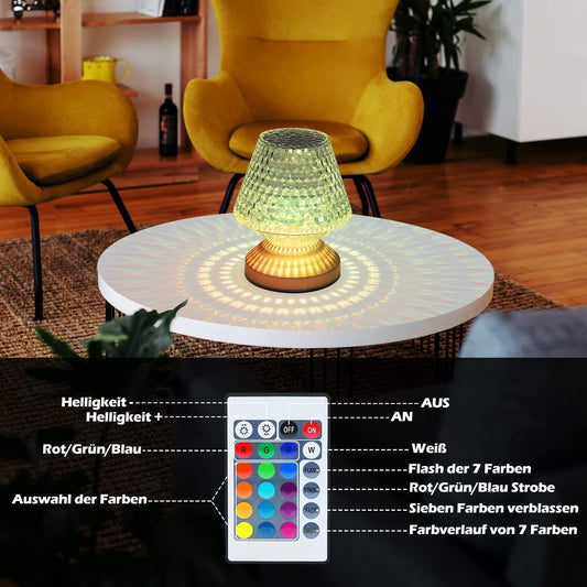 ZMH Tischlampe Kabellos LED Nachttischlampe touch - Kristall Lampe akku Tischleuchte dimmbar 16 Farben Nachttischleuchte batteriebetrieben mit Fernbedienung für Wohnzimmer Valentinstag Deko 1 Stück