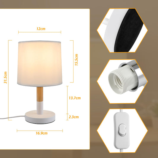 ZMH Nachttischlampe 2er Set Tischlampe Wohnzimmer - Tischleuchte Holz E27 Fassung Bedside Lamp Schlafzimmer Weiß Landhausstil Nachttischleuchte Nachttisch Modern Für Esszimmer Landhaus Restaurant