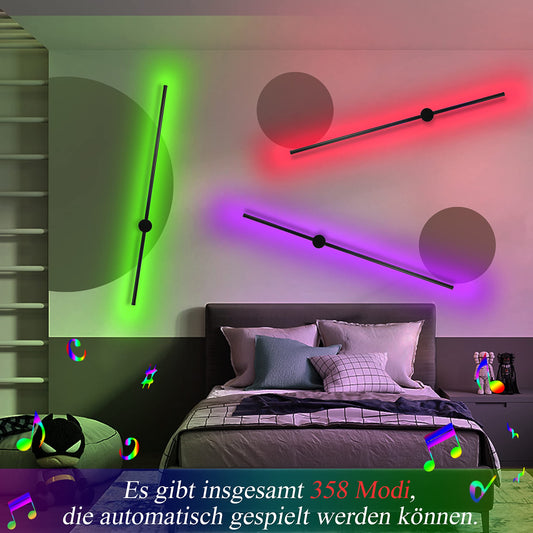 ZMH Led Wandleuchte Innen Wandlampe RGB - 100CM Schwarz Musik Flurlampe Modern Design Dimmbar mit Fernbedienung 8W Wandbeleuchtung für Flur Treppenhaus Schlafzimmer Wohnzimmer