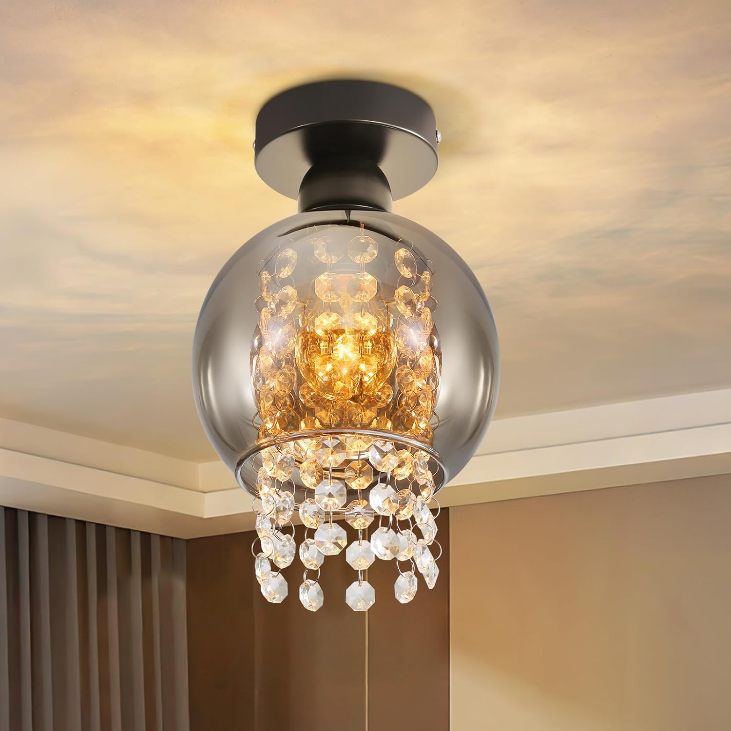 Deckenlampe Schlafzimmer Deckenleuchte Flur - Flurlampe Glas E27 Schlafzimmerlampe Rauchgrau Modern 1 Flammig Deckenbeleuchtung Esszimmer Kugel K¨¹chenlampe Kristall f¨¹r K¨¹che(ohne Leuchtmittel)