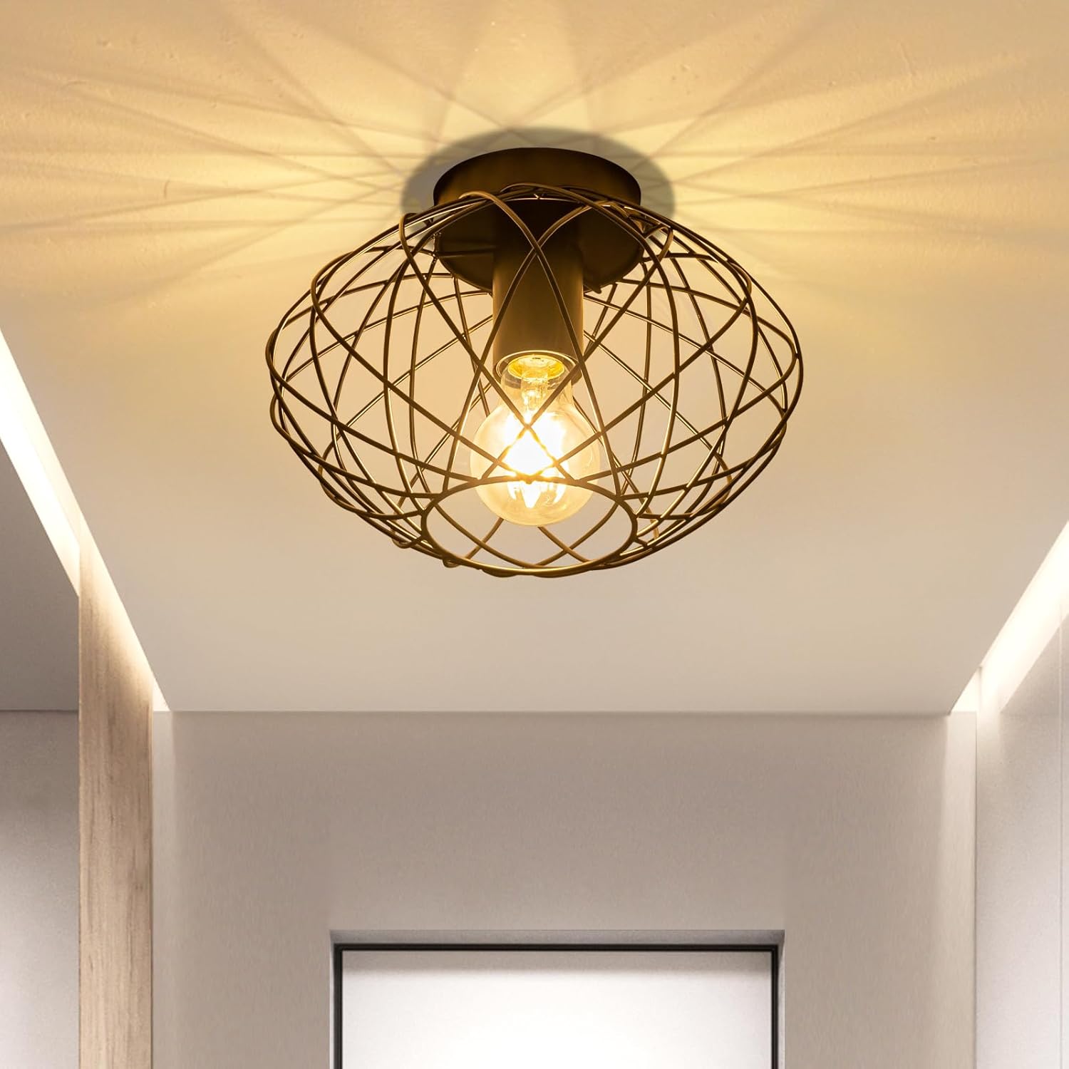 Deckenleuchte Flurlampe Vintage Schwarz - Deckenlampe Retro Industrial E27 1 Flammig Retro Metall Lampenschirm Runde K¨¹chenlampe Decke Korride Wohnzimmer Schlafzimmer ? 25cm