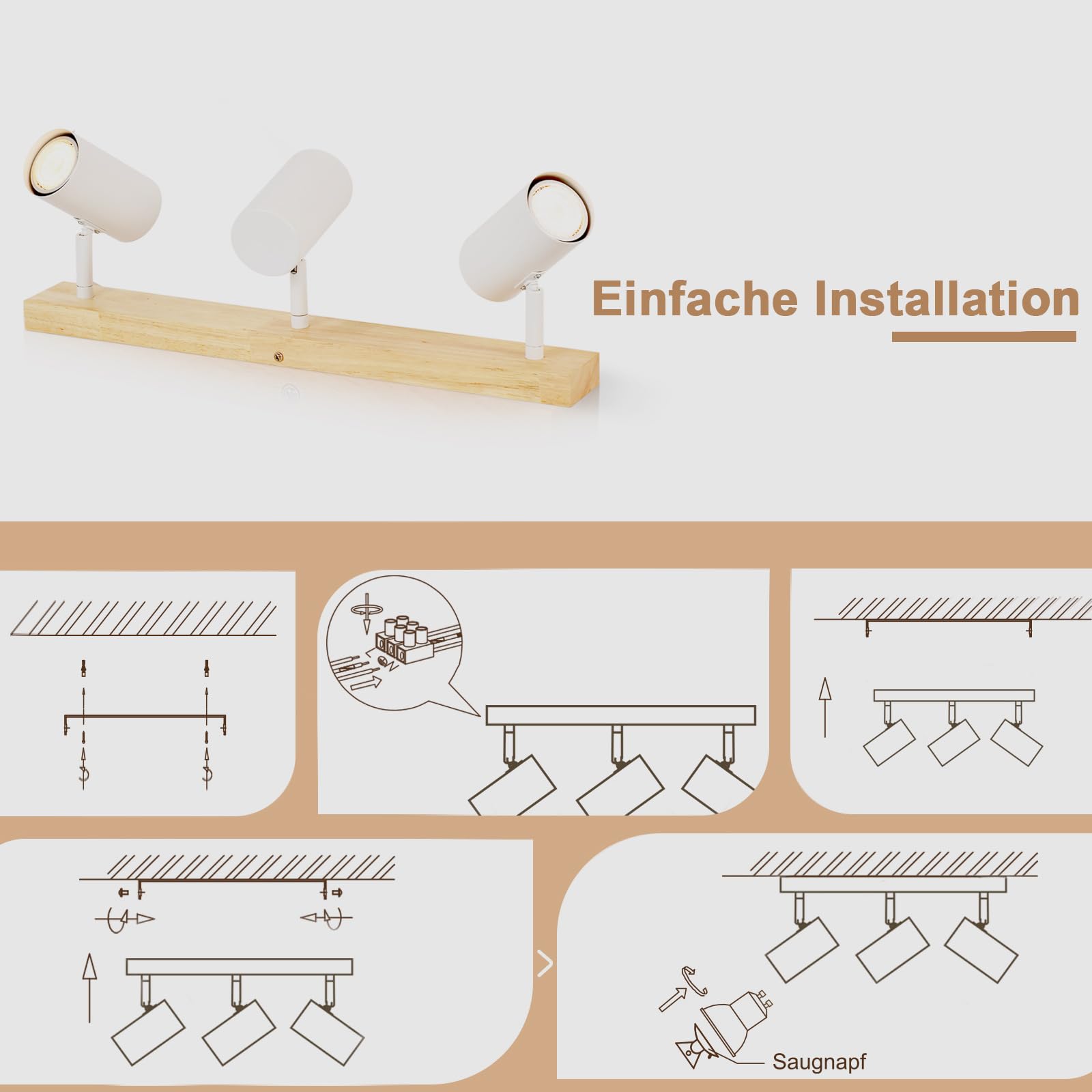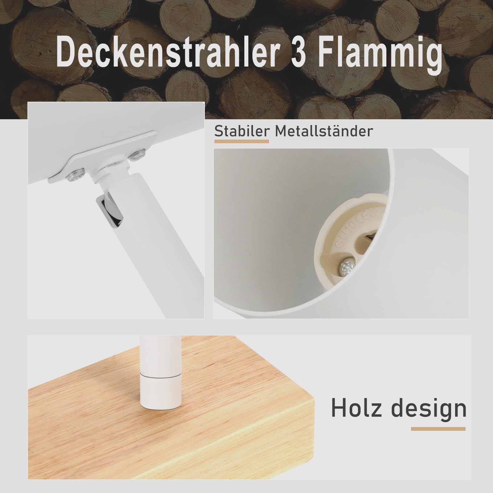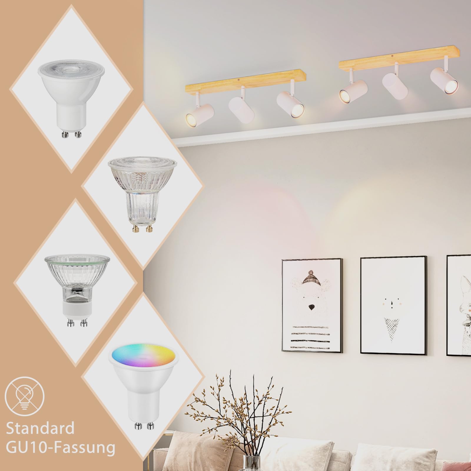 Deckenleuchte Holz Deckenstrahler 3 Flammig - Vintage Deckenlampe GU10 Deckenspots Modern Wei? Schwenkbar 350¡ã Flurlampe f¨¹r Schlafzimmer Wohnzimmer Arbeitszimmer Esszimmer K¨¹che