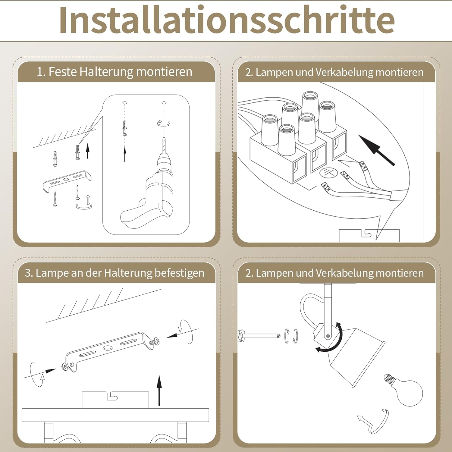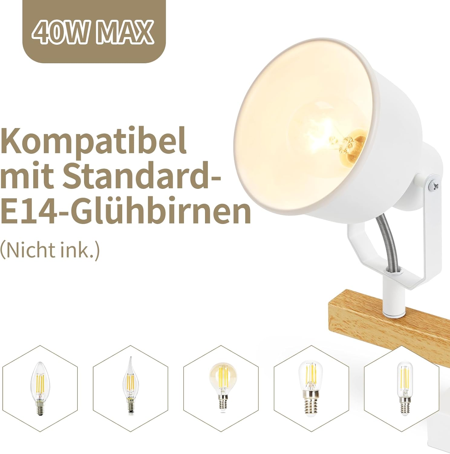 ZMH Deckenstrahler 1/2 Flammig Schwarz/Weiß: Deckenlampe Vintage Schwenkbar 350° MAX.25W E14 Fassung Industrial Spotbalken für Wohnzimmer Schlafzimmer Büro (ohne Leuchtmittel)
