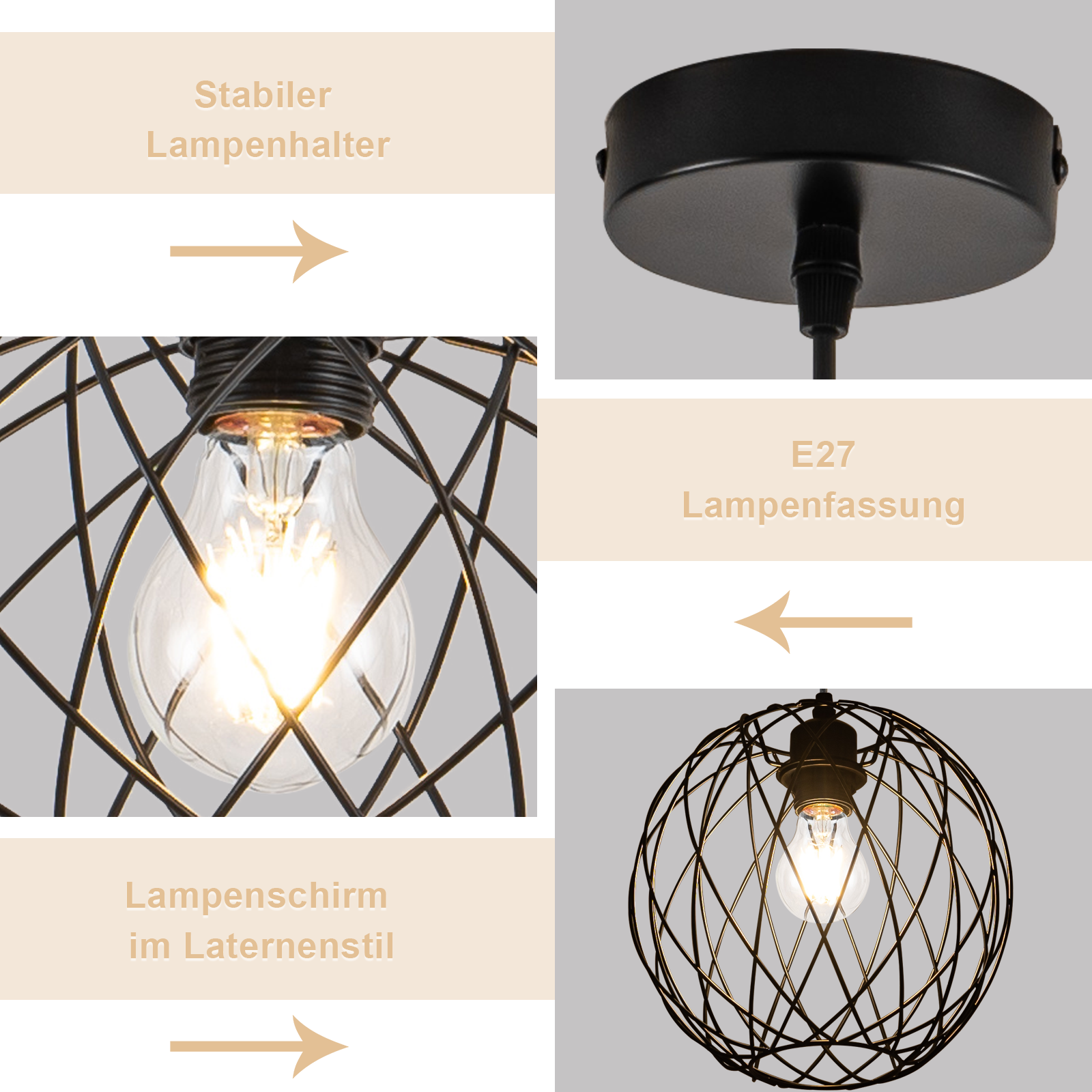 Diese Vintage H?ngelampe nimmt einen E27-Lampenhalter an, sodass Benutzer Lampen ausw?hlen und installieren k?nnen, die ihren Bed¨¹rfnissen entsprechen. HINWEIS: Lichtquelle nicht im Lieferumfang enthalten. MAX.40W