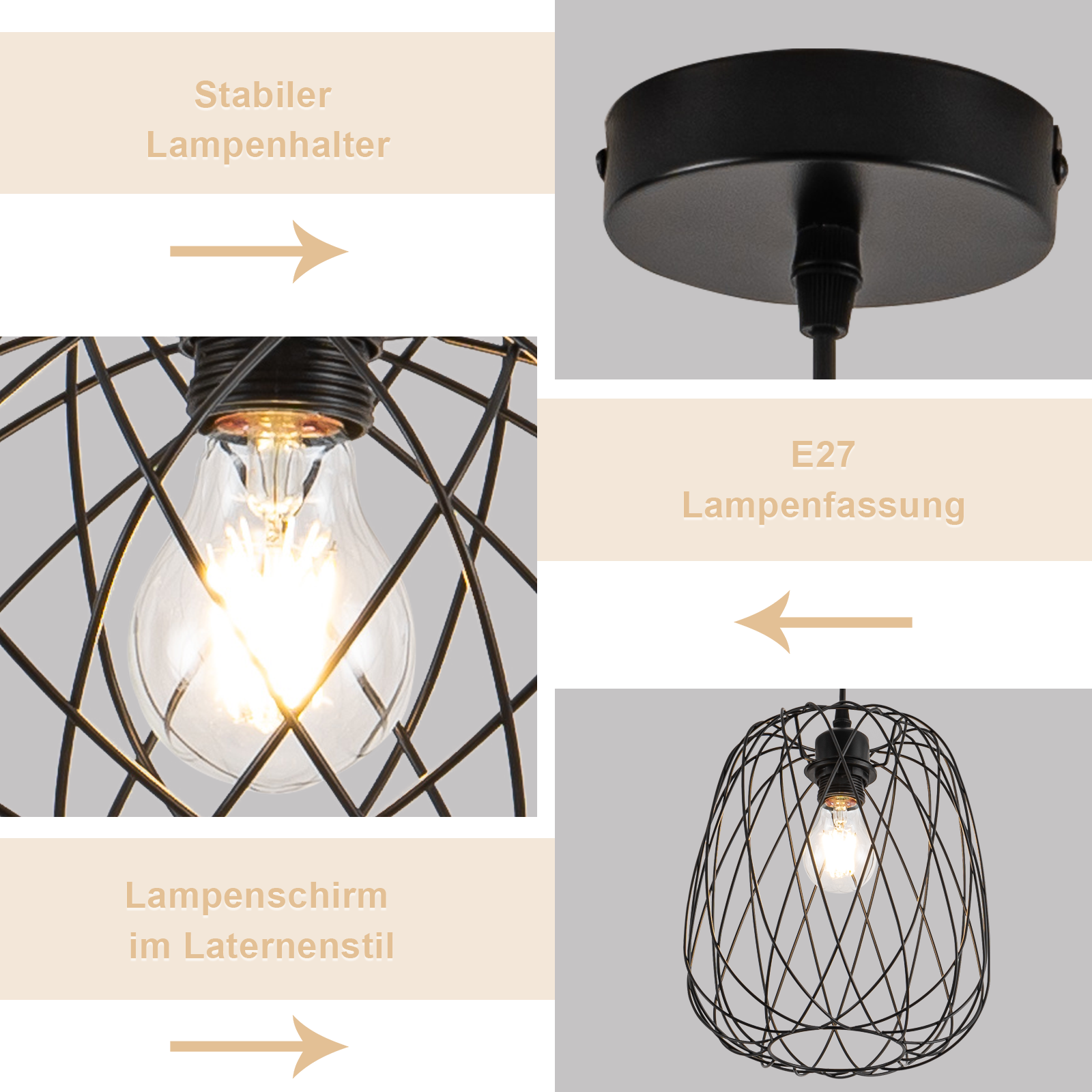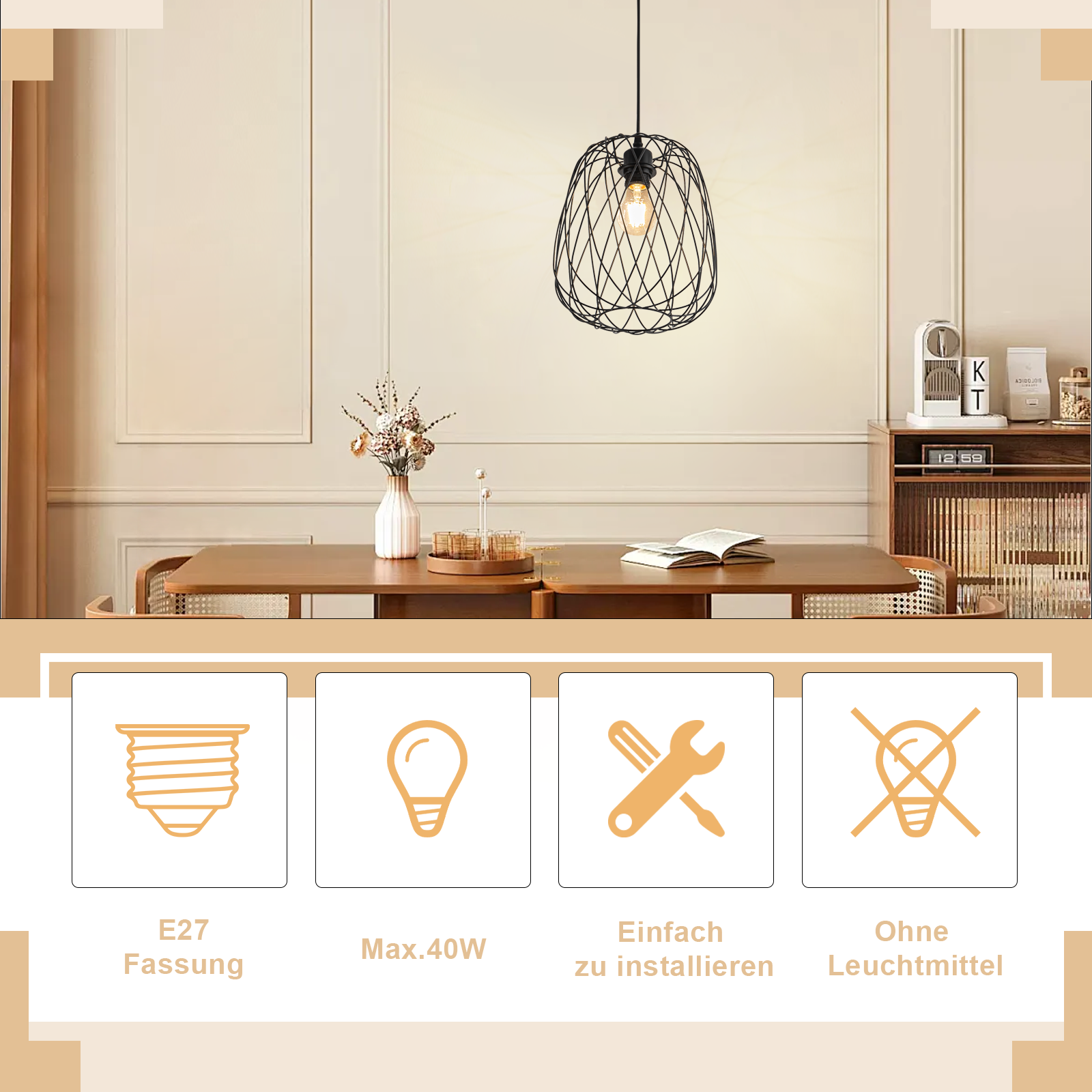 Diese Vintage H?ngelampe nimmt einen E27-Lampenhalter an, sodass Benutzer Lampen ausw?hlen und installieren k?nnen, die ihren Bed¨¹rfnissen entsprechen. HINWEIS: Lichtquelle nicht im Lieferumfang enthalten. MAX.40W