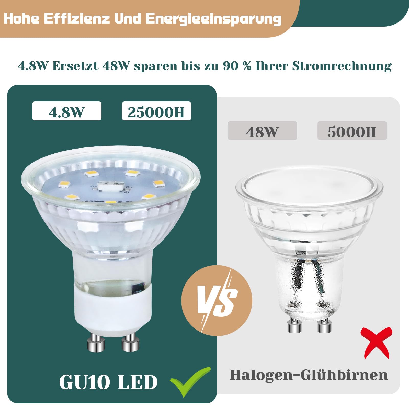 ZMH Gu10 Modern Warmweiss Leuchtmittel - 4.8W 3000K Lampe Ersetzt 48W Birnen Abstrahlwinkel 110¡ã Spot Energiesparlampe Gl¨¹hbirne Nicht Dimmbar Reflektorlampen mit Langer Nutzlebensdauer 6 pack