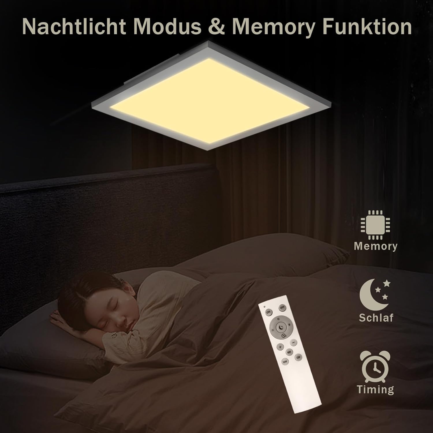 - ¡¾Timerfunktion und Nachtlichtmodus¡¿Diese moderne Deckenleuchte verf¨¹gt ¨¹ber eine Timerfunktion und einen Nachtlichtmodus, damit Sie Ihr Zuhause schneller erhellen k?nnen. Der Timer-Modus erm?glicht es Ihnen, das Licht so einzustellen, dass es nach 20 Minuten ausgeschaltet wird, so dass Sie nicht durch das l?stige Ausschalten des Lichts gest?rt werden. Der Nachtlichtmodus sorgt f¨¹r ein sanftes, blendfreies Licht in der Nacht und damit f¨¹r eine sichere und angenehme Lichtumgebung.