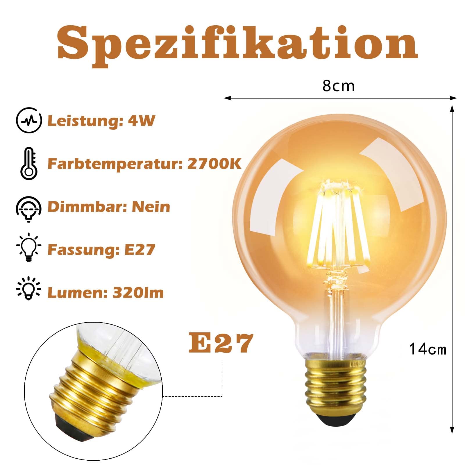 - ¡¾ENERGIESPAREND & UMWELTFREUNDLICH¡¿: Diese Edison vintage Gl¨¹hbirne e27 hat eine effizient Energieeffizient Wirkung, ersetzt die herk?mmliche 40W-Gl¨¹hlampe, durchschnittlich 20000 Stunden Lebensdauer, dies spart bis zu 90% gegen¨¹ber herk?mmlichen Gl¨¹hlampen; Mit hochwertigen LED-Filamenten ist die Lichtquelle konstant und nicht flackert