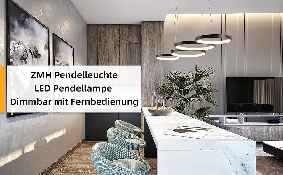 - ¡¾Design¡¿: ZMH Pendelleuchte ¨¹berzeugt mit einem angesagten minimalistischen Design, die sich aus vier Aluminiumringe miteinander verwoben. Es entsteht eine gewisse Asymmetrie, individualisiert das Erscheinungsbild, die ergeben ein attraktives Erscheinungsbild, das zu jedem Ihrer Wohnstile passt