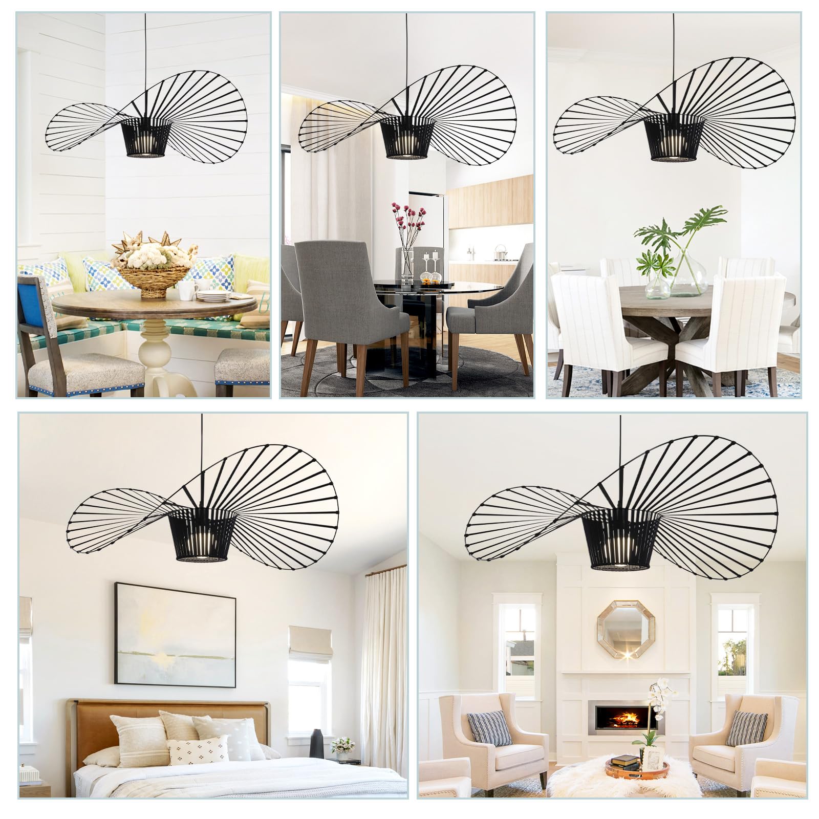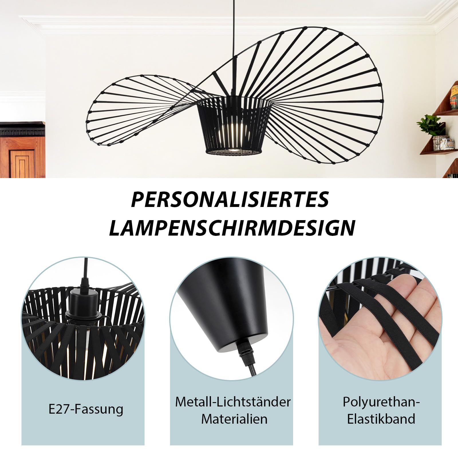 ZMH Vertigo Pendelleuchte 140CM E27 - Modern Schwarz Kronleuchter Wohnzimmer Retro H?ngelampe Glasfiberstahl + Polyurethan Esstischlampe Hut H?ngeleuchte Max. 40W Ohne Leuchtmittel